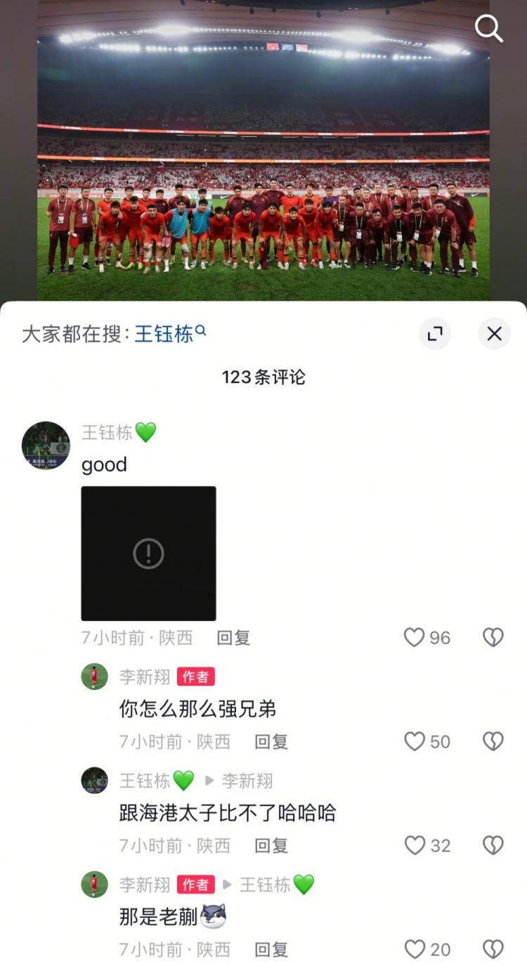 随后王钰栋在评论区与其互动: